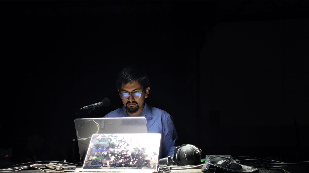 Preamble is an aural conversation – an invitation to listen. Layering ecological sounds, voices, texts, ambient melodies, and ravey rhythms, the piece is shaped live through improvisational coding. At its core are recordings from my work on Palestine, layered with the fading presence of birdsong – a reflection on both political resistance and ecological loss. Near the end, my father’s voice reciting the constitutional preamble offers a moment of quiet clarity – a call for unity and shared responsibility. Preamble explores the interconnectedness of all things: human and non-human, personal and political, sound and silence. It’s an attempt to create an immersive, ever-shifting soundscape.